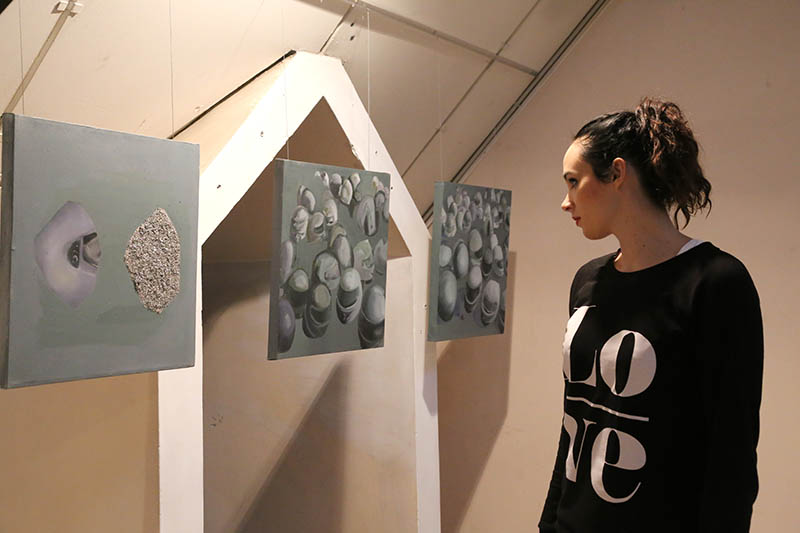 As we could say Erdei reshapes the Realism of the 20. Ct, the Surrealism and Abstraction into a high-spirited painting based language of form whose subjects included domestic life, relationships and the nature of painting itself. Adrienn Erdei’s approach to her paintings is not a fashionable iconoclastic breaking with the idea that a painting or print is a twodimensional object representing a single point of view. Her compositions are rarely dynamic but witty and emotional, her professional inspiration have been arrived from diverse sources ranging from Hungarian masters Szinyei-Merse, Karoly Ferenczy to the poetic imagery of Peter Greenaway, Michaël Borremans, to the painters of the disembodied images and embodied mind as Gábor Lajta, István Nyári, Lóránt Méhes, Gyula Konkoly, Claudia Tamás or Ábel Szabó Ábel and Attila Adorján.