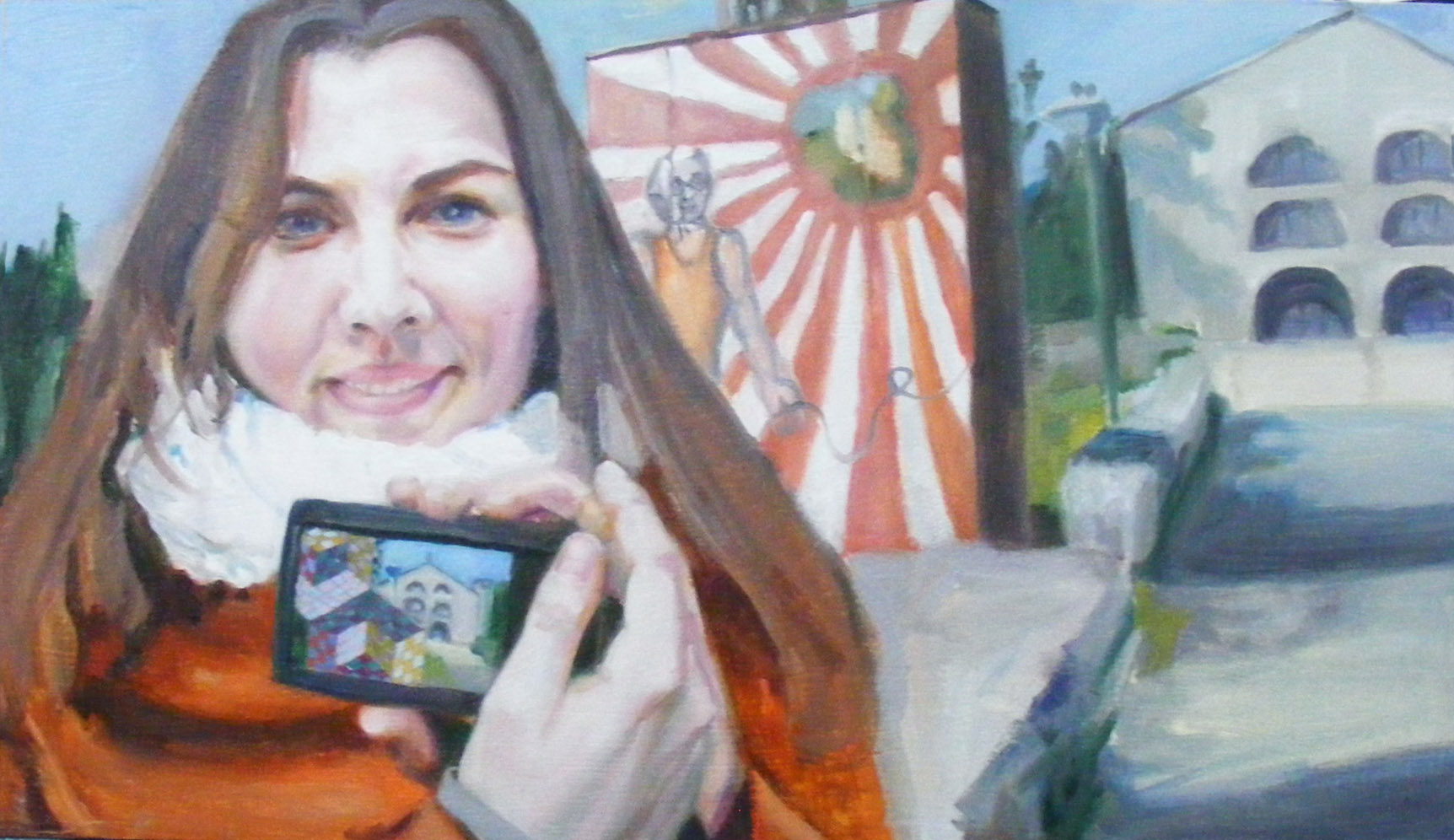 Lilla and the Vasarelly sculpture 2013 Lilla and the Vasarelly sculpture, oil on wood, 50 × 90 cm, 2013. Hungarian title: Lilla és a Vasarelly szobor